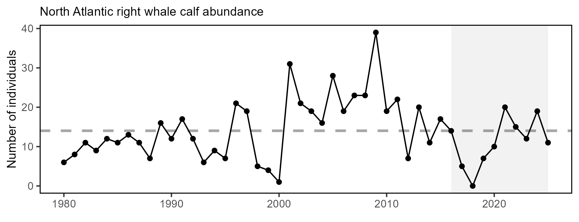 Grey background = last 10 years